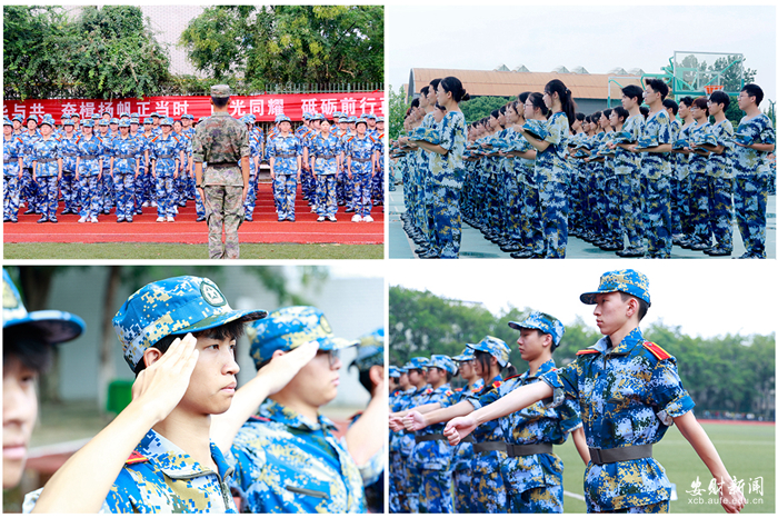 军训场上,2024级新生身着整齐的迷彩服,军姿挺拔、精神饱满,步伐整齐划一,每一个动作都力求精准到位,展现了安财学子良好的精神风貌和军事素养。