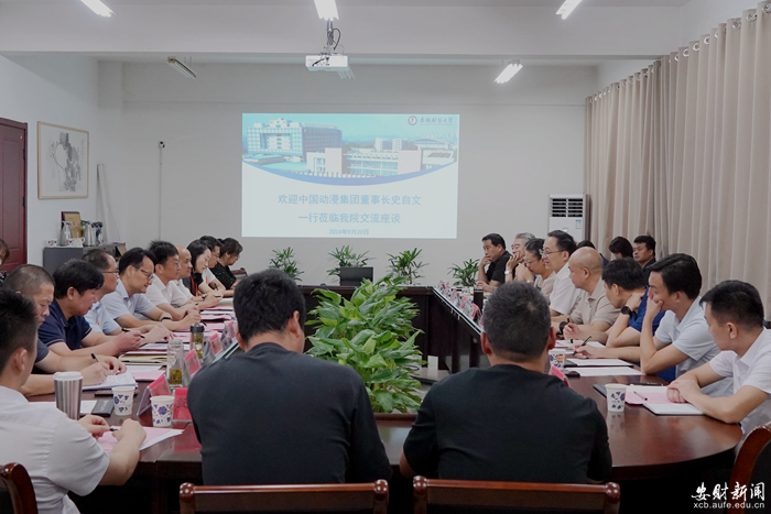 9月20日上午,中国动漫集团党委书记兼董事长史自文一行莅临我校进行动漫、文旅产业交流座谈。蚌埠市委常委、宣传部部长郭鹏,我校党委副书记张亚新出席座谈会。中国动漫集团教育培训中心(筹)、中漫(北京)文化发展有限公司、蚌埠市委宣传部、蚌埠市文旅局、蚌埠市文旅投集团相关负责人,我校党委宣传部负责人,艺术学院全体党政领导及各系主任等参加座谈会。会议由校党委常委、宣传部部长李超主持。