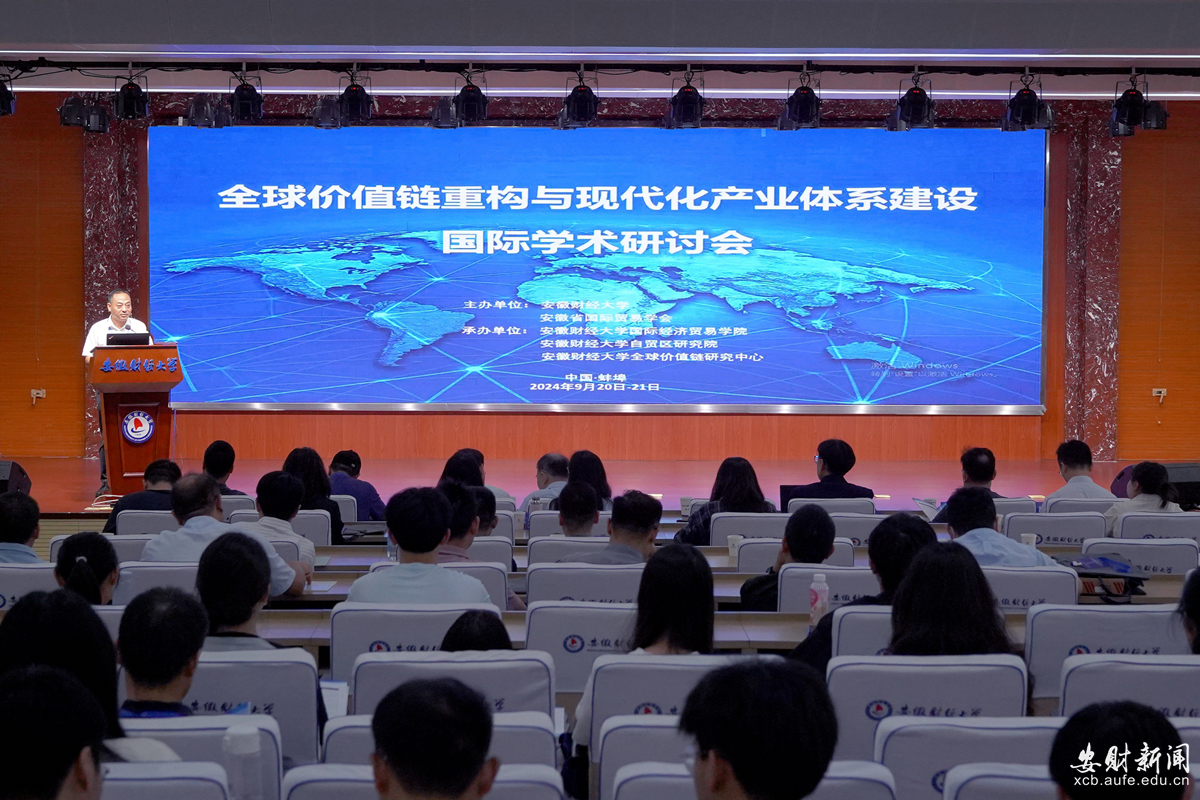 9月20日至21日,由安徽财经大学与安徽省国际贸易学会共同主办,国际经济贸易学院、安徽财经大学全球价值链研究中心承办的“全球价值链重构与现代化产业体系建设”国际学术研讨会在龙湖东校区求真楼一楼报告厅举办。校党委常委、副校长王兵出席并致欢迎辞。安徽省国际贸易学会会长冯德连教授,韩国崇实大学全球商贸系Seung Ho Cho教授,复旦大学世界经济研究所副所长沈国兵教授,东南大学国际经济研究所所长邱斌教授,中国农业大学国际农产品贸易研究中心主任林发勤教授,以及来自韩国崇实大学、南京大学、合肥工业大学、安徽大学、武汉理工大学、江苏大学、北京科技大学等国内外20多所高校的专家学者和师生参加了此次研讨会。会议开幕式由国贸学院左宗文博士主持。